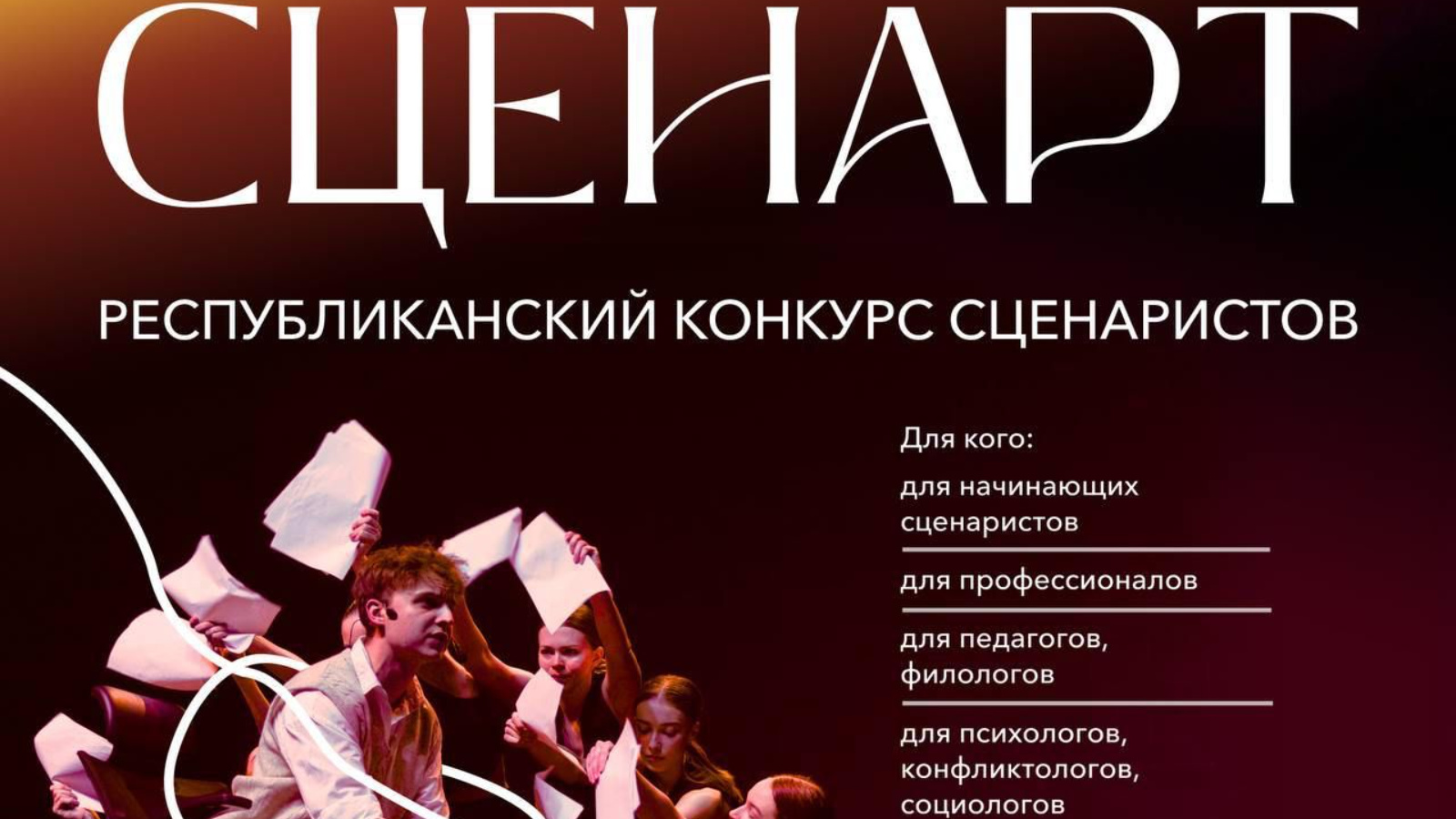 «СценАрт» — проект, где участники получают навыки сценарного мастерства от ведущих экспертов в сфере театрального искусства, а затем пишут свой собственный сценарий, отражающий социально значимую тематику.